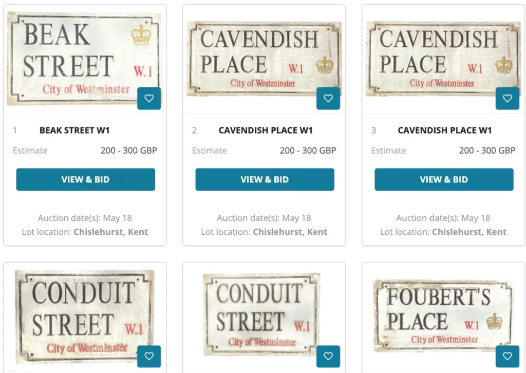 A collection of 340 1950s/1960s and Modern London Street are being sold off by Westminster Council. There are two different types of distinctive London Street signs being auctioned by Catherine Southon Auctioneers & Valuerson Thursday 18th May in Chislehurst, South London. The first examples all from the Crown Estate date from the 1960s and are […]