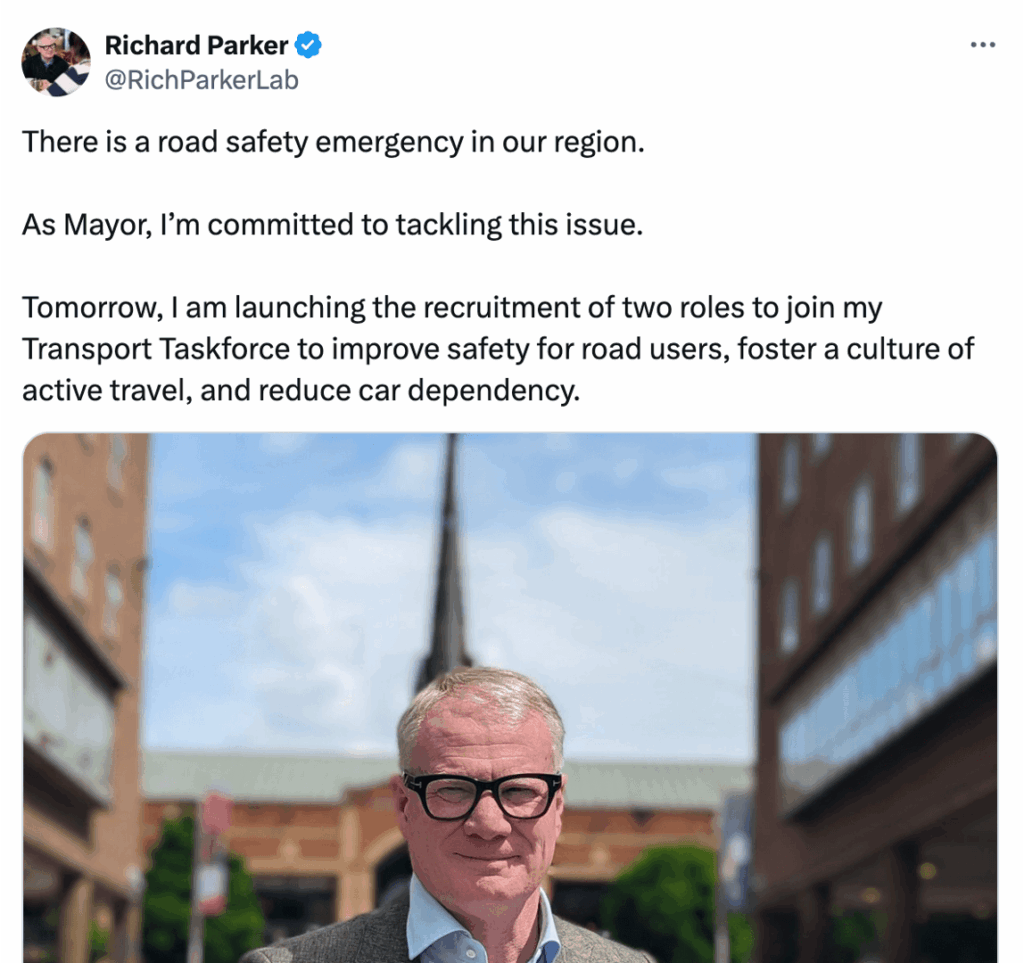 The mayor of the West Midlands, Richard Parker, has announced he is launching the recruitment of two roles to join the region’s Transport Taskforce to improve safety for road users, foster a culture of active travel, and reduce car dependency. “There is a road safety emergency in our region,” he tweeted, “As Mayor, I’m committed […]