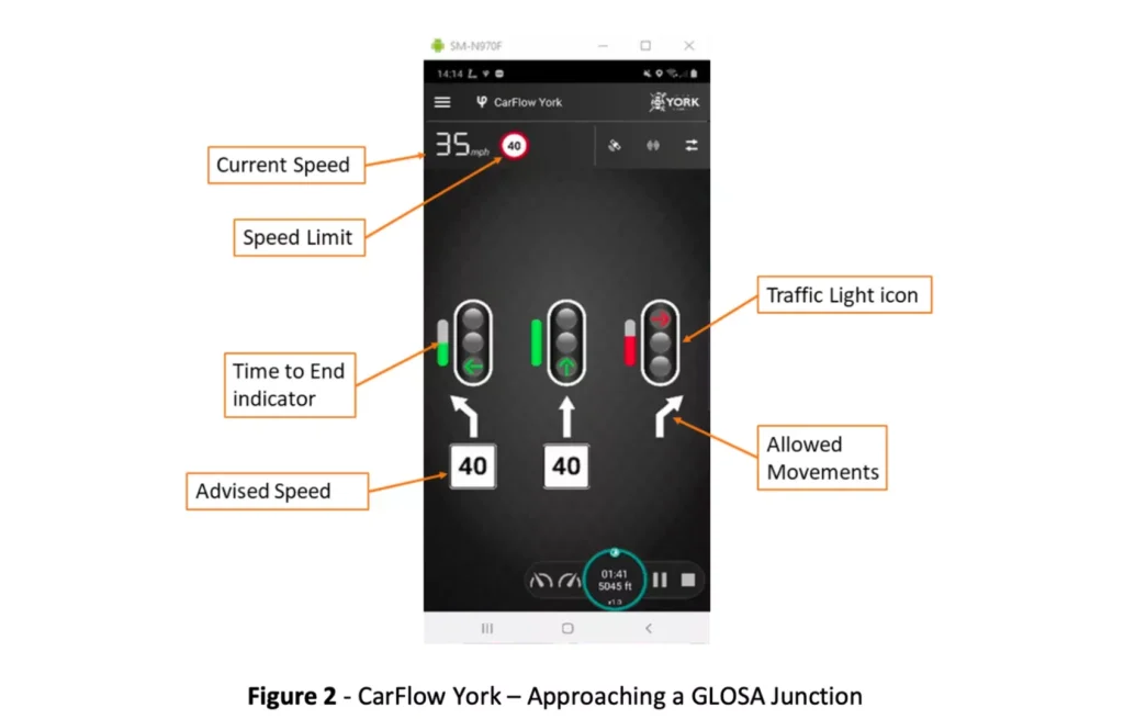 At the time of writing, the York GLOSA system is being configured at the initial sites. After site and system acceptance, the CarFlow York app (Android and iOS) will be available to the public. At that point, we expect further collaboration with consumer lead application software to develop the system as a whole. The CarFlow York app incorporates a link to a survey site that is controlled by the City of York Council.
