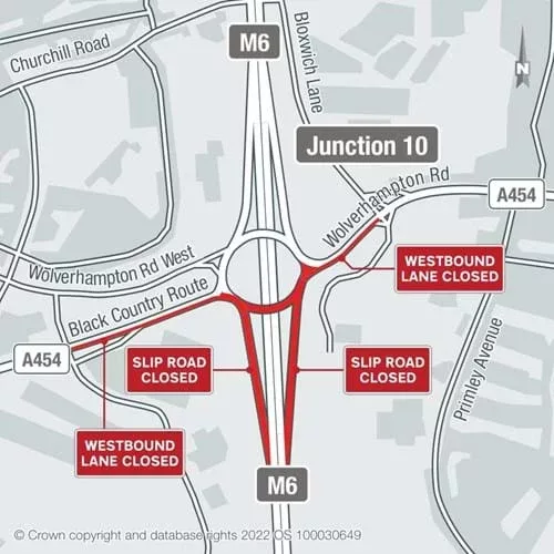Sections of slip roads around junction 10 of the M6 in the West Midlands will be closed from today (Tuesday 11 April) as improvement works