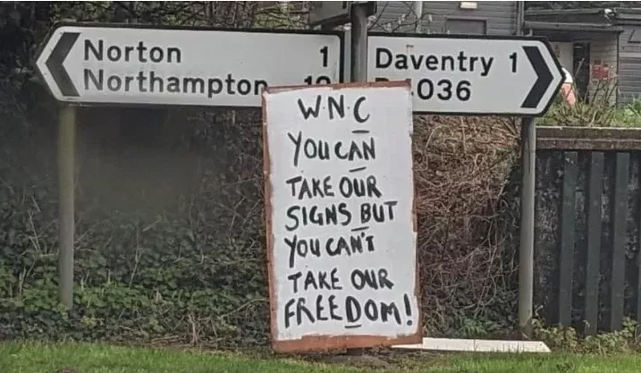 A woman who put up signs around a pothole-plagued town has said she is stepping back from the campaign. Daventry Banksie, who has remained anonymous,