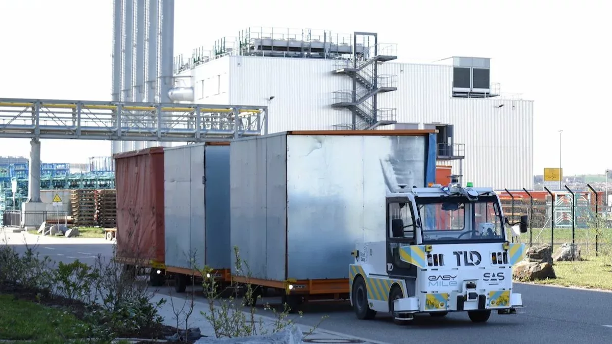 Autonomous driving company Easymile is showcasing a new “TractEasy” driverless tow-tractor. EasyMile has been providing solutions for the autonomous transport of people and goods for