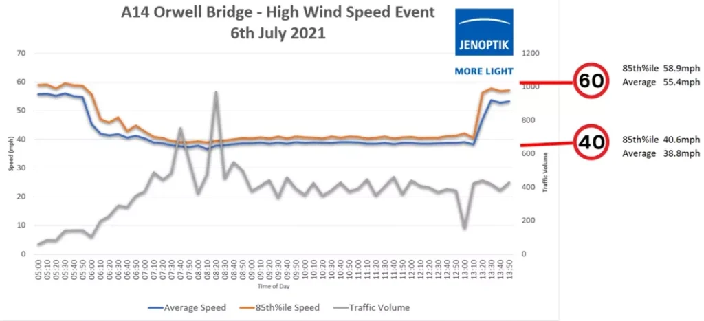 Analysis of the driving speeds of vehicles crossing the Orwell Bridge in Suffolk has proved that drivers are adhering to dynamically reduced speed limits in windy weather.
