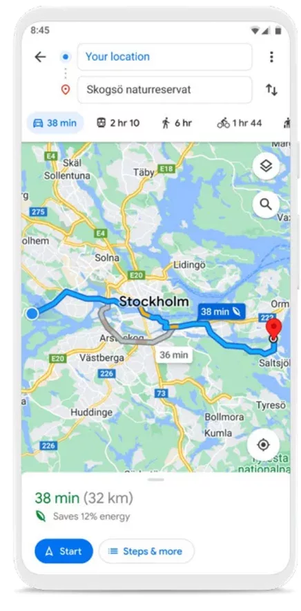 The feature uses a machine learning model to predict which route is the most fuel- or energy-efficient and recommends it to Maps users. If the most fuel-efficient route is also the fastest, Google Maps will default to that option.