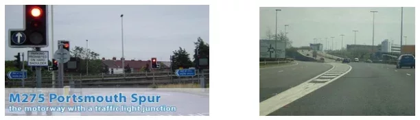 At its southern terminus, access direct from the ferry port onto the northbound entry slip road is an addition to this high-standard motorway. It introduces a traffic light junction under motorway restrictions.