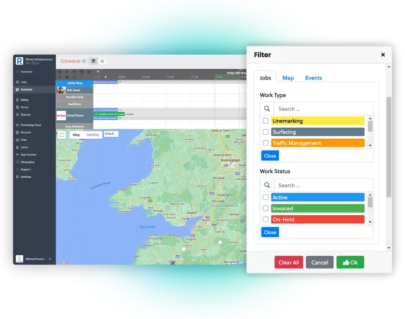 Create events against a job and assign individual users or easily create groups for your teams and crews, allowing you to instantly assign jobs to multiple operatives at once. Assign all the necessary plant, equipment, and vehicles, so that your operatives know exactly what they’re doing, and the tools they need to get the job done right.