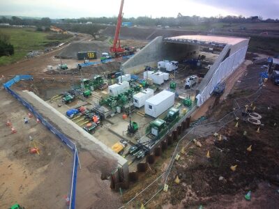 The giant pre-constructed concrete structure – weighing approximately 8,500 tonnes – will be slid 65 metres into a deep trench cut into the motorway embankment, from its current construction location on the north of the motorway. The motorway will then be fully reconstructed above it.