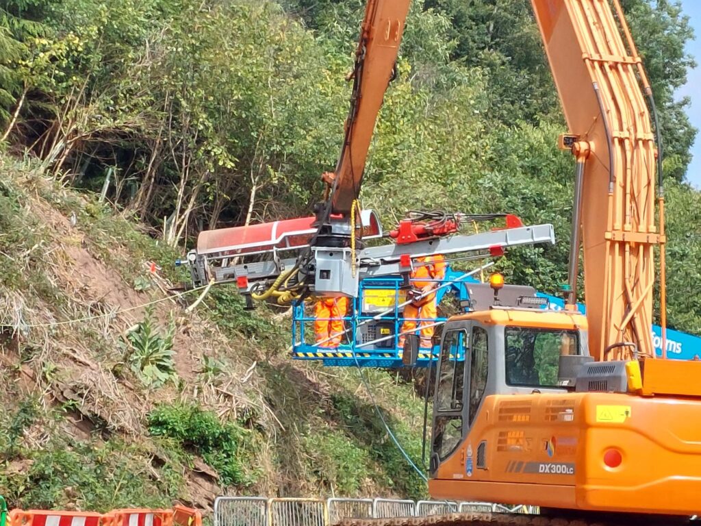 To improve the long-term safety of the location and prevent further rockfalls here, a patterning of steel bolts and steel mesh will be installed across the stretch of slope affected by the rockfall at Leys Bend, on the Herefordshire/Monmouthshire border.