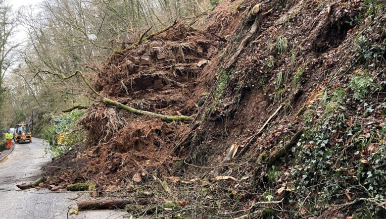 The closure of the A386 near Weare Giffard in Devon will continue for approximately four weeks while a permanent repair scheme is carried out. The