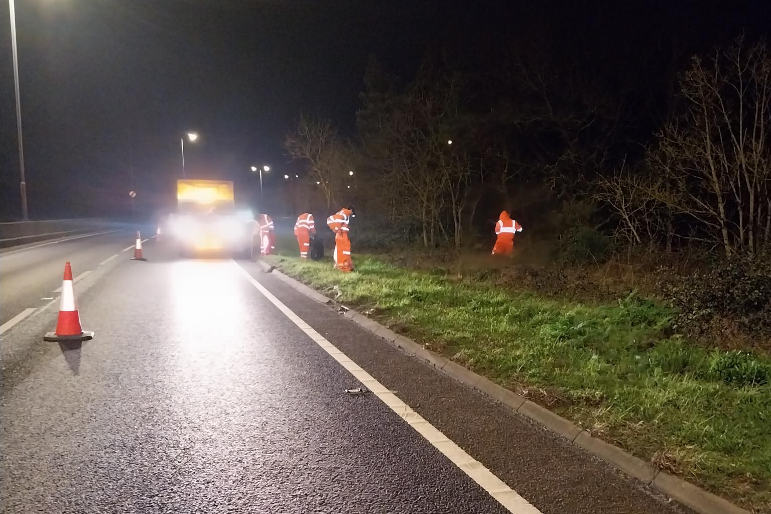 Colchester City Council carried out a large-scale four-night clean-up of the A12, with seven council officers working to remove litter and debris along the road past the city between junctions 26 and 29.