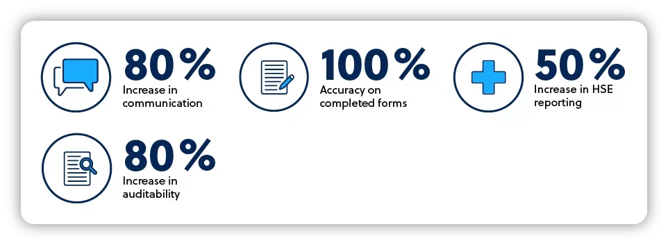 Instant communication between site and office means admin teams can use Re-flow to track job status from arrival through to completion with powerful, live data – resulting in an 80% increase in cross-team communication. Office staff now have peace of mind knowing that all required paperwork will be completed to a high standard and available to clients as soon as works are complete. The ability to check forms and data in real time has enabled the business to ensure 100% accuracy on all completed forms, enabling a 50% increase in health and safety incident reporting, and an 80% increase in auditability.