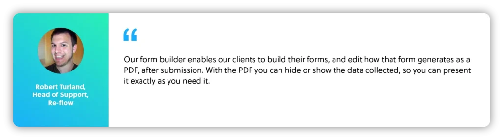 Leading up to the public release of their form builder, the feature underwent extensive trials with a select few of Re-flow’s existing clients to ensure it met the high standards of quality the company strives for, and now it’s finally available to all current and future Re-flow users for no additional cost.