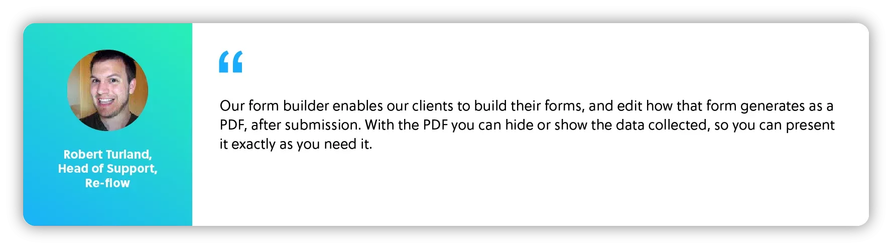 Part of the wider Re-flow vision has always been to give users the power to build their own forms, with no limits on simplicity or complexity; the power to create forms that fit the business needs of their clients exactly how they wanted. Allowing them to collect the data they need, the way they need it, completely free of charge, according to the company.
