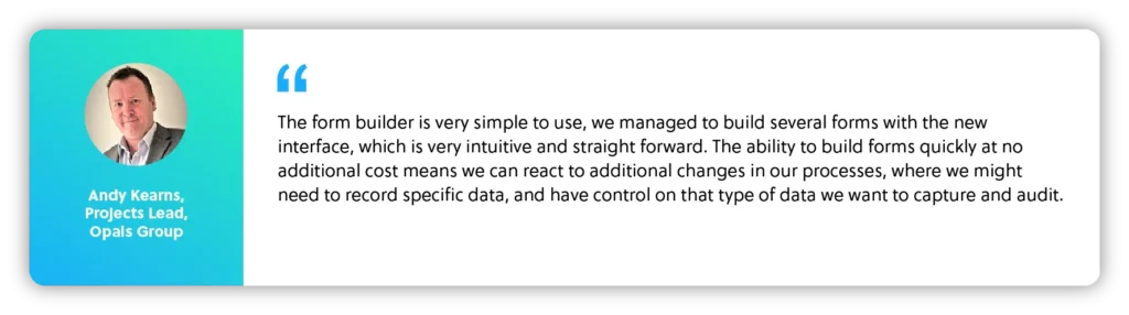 Re-flow’s commitment to this aim is particularly on display with its form builder. Understanding how crucial forms are to the industries they serve, it also understood their shortcomings – with a mass of forms comes a mass of paper, printing, storage, and transport – all entailing their own respective costs and problems. For years, a vast catalogue of digital forms has been a staple of their software. Despite this, Re-flow knew that the needs of their clients would soon outgrow this catalogue; users needed the ability to implement bespoke forms that fit their business, a service which, until now, was only offered through the Re-flow support team for an additional cost.