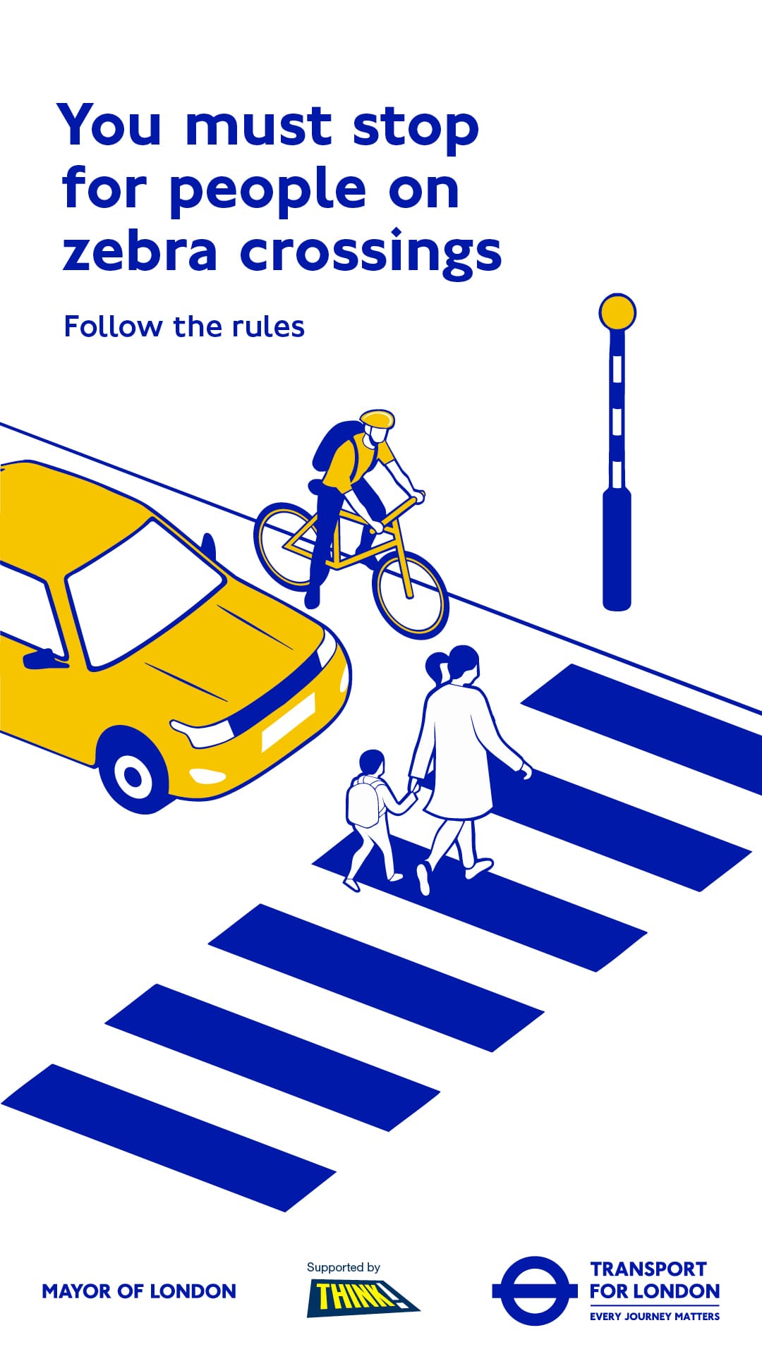 - You must stop for people on zebra crossings