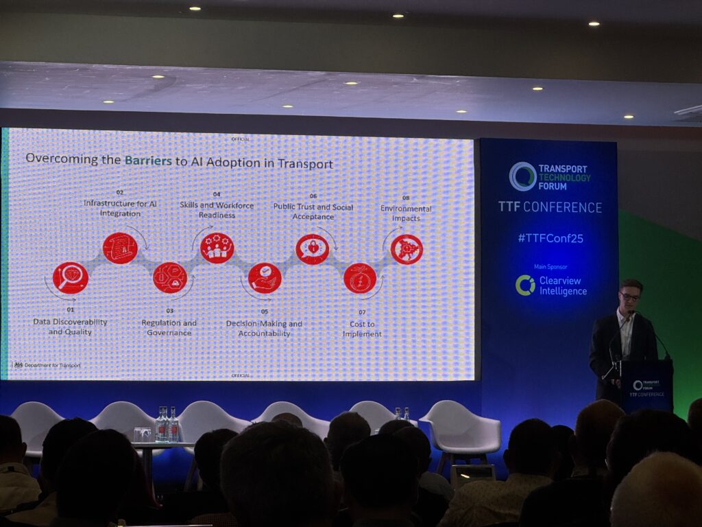 The issues around adopting AI in the transport sector has found barriers to adoption in transport around data discovery, skills and around public trust and social acceptance – and if you don’t have the acceptance, you won’t get the adoption.