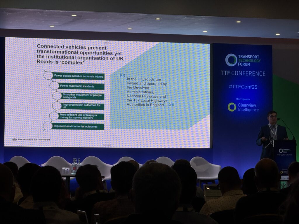 Danial says he is here to understand what the DfT can do with connected vehicles and thanks to work from the TTF and others, this is now a priority in government and says virtually every vehicle is connected – it’s not just the latest ones.