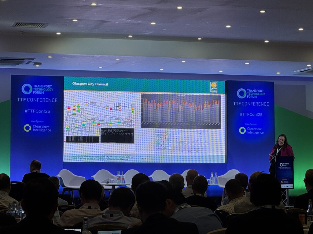 She says that, while Glasgow has the lowest car ownership in Scotland, it has the highest traffic flow. Its signals network has bus priority solutions and greenwave for the fire service at key locations. They’re pushing active travel and public transport improvements.