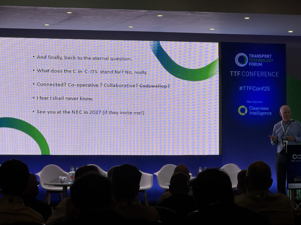 He talks of events like ITS World Congresses “aren’t I lucky that I get to go to Melbourne, Los Angeles and Hinckley (or as he calls it, Nuneaton). He says this is key to understand what is happening across the world and if you don’t look around “you’re a mug”.