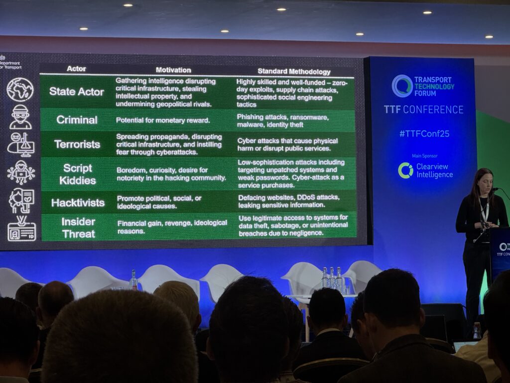 She says good cybersecurity can mitigate the opportunistic – they might not care it’s transport but if you are an easy target they will go against people. Then there are targetted attacks, where people take an awful lot of time and effort to get in.