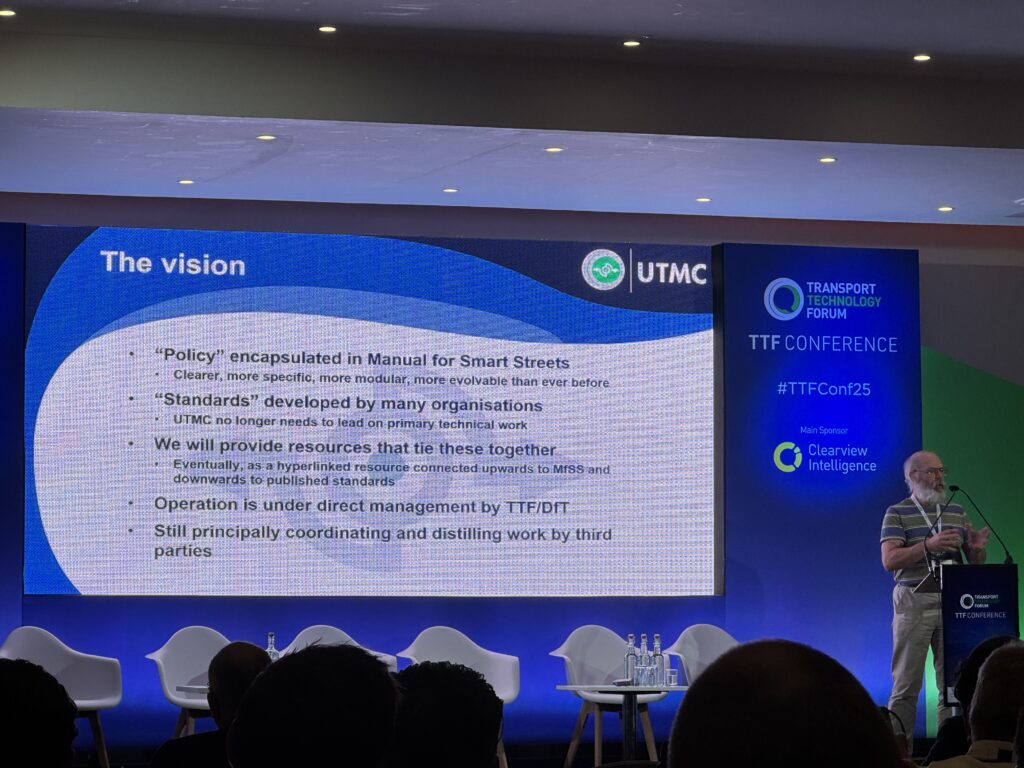 Darren Capes says one piece of work being done in MfSS is procurement guidance, work around UTMC as it is “reinvented” (see yesterday’s session) and rewrite of the code of practice for roadside electronic equipment. He asks for volunteers to join in this here.