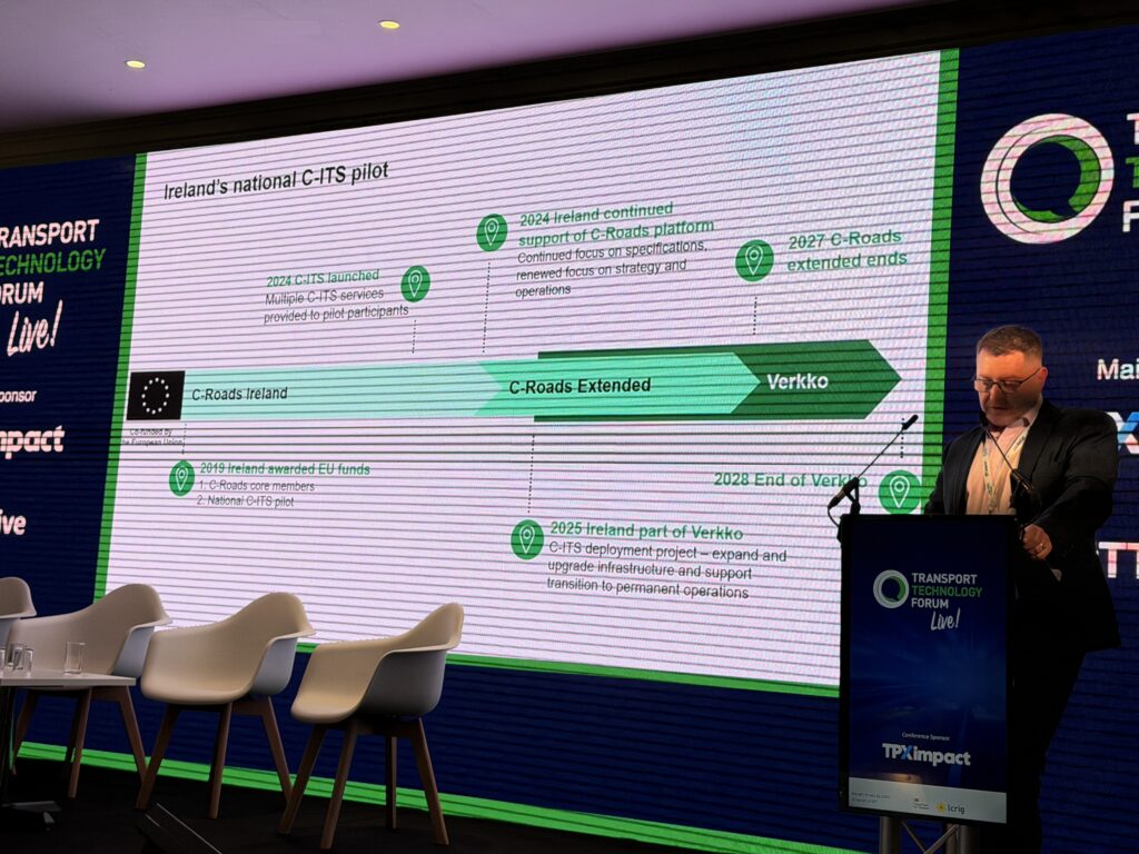 Next it’s Lee Street, Director and Head of Technology Services at AECOM. He is talking about Ireland’s Connected Vehicle Pilot – its outcomes and transition to operations.