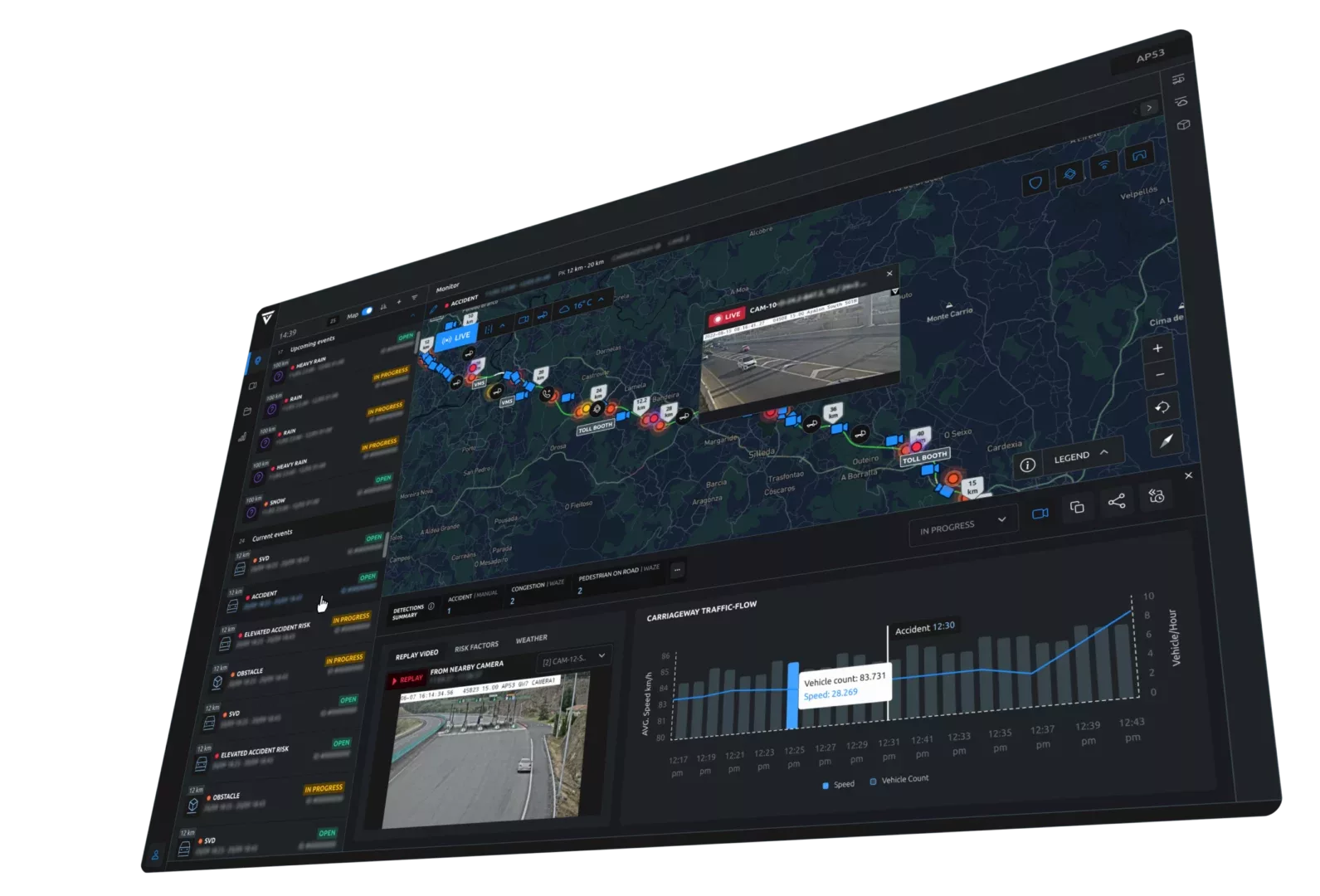 The software’s insights increase accuracy in incident detection, and reduces the time taken for incidence response. It can even predict where road collisions are more likely to take place before they happen, allowing warning signs to be set and emergency services to head to an area, just in case.