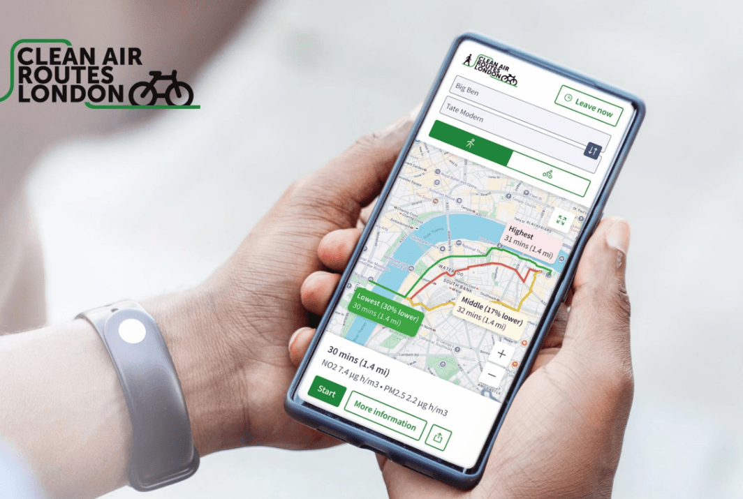 The new tool encourages people to leave their cars behind and explore London on foot or by bike – while choosing roads which minimise exposure to harmful air pollution.
